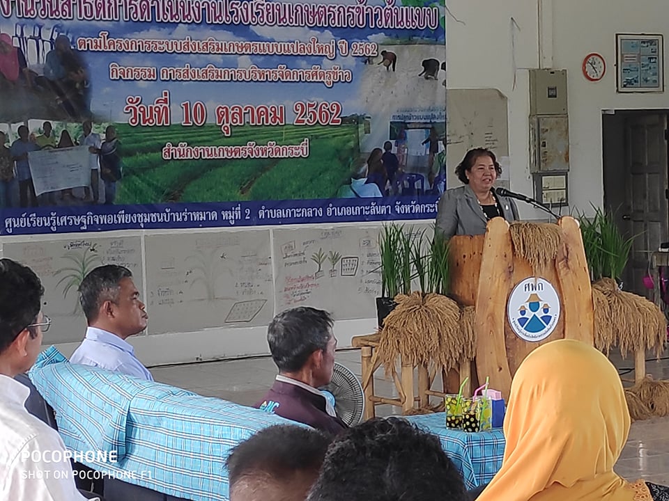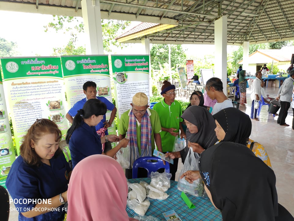 วันที่ 10 ตุลาคม 2562 นายชัยพร นุภักดิ์ ผู้อำนวยการศูนย์ส่งเสริมเทคโนโลยีการเกษตรด้านอารักขาพืชจังหวัด สุราษฎร์ธานี มอบหมายให้ นางชนิดา ตะเภาน้อย นักวิชาการส่งเสริมการเกษตร ชำนาญการ และเจ้าหน้าที่จาก ศทอ.สฎ เข้าร่วมจัดนิทรรศการและถ่ายทอดความรู้ในงานวันสาธิตการดำเนินงานโรงเรียนเกษตรกรข้าวต้นแบบ ณ กลุ่มแปลงใหญ่ข้าวบ้านเกาะกลางหมู่ที่1 ตำบลเกาะกลาง อำเภอเกาะลันตา จังหวัดกระบี่ โดย ศทอ.สฎ ได้ให้ความรู้ในด้านการป้องกันกำจัดศัตรูพืชโดยชีววิธี พร้อมทั้งนำเชื้อจุลินทรีย์ที่ใช้ในการป้องกันกำจัดศัตรูพืช สนับสนุนให้แก่เกษตรกรที่มาร่วมงานดังกล่าว