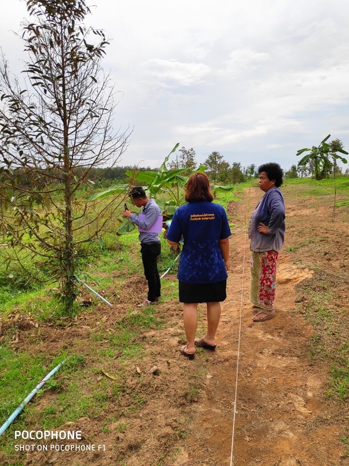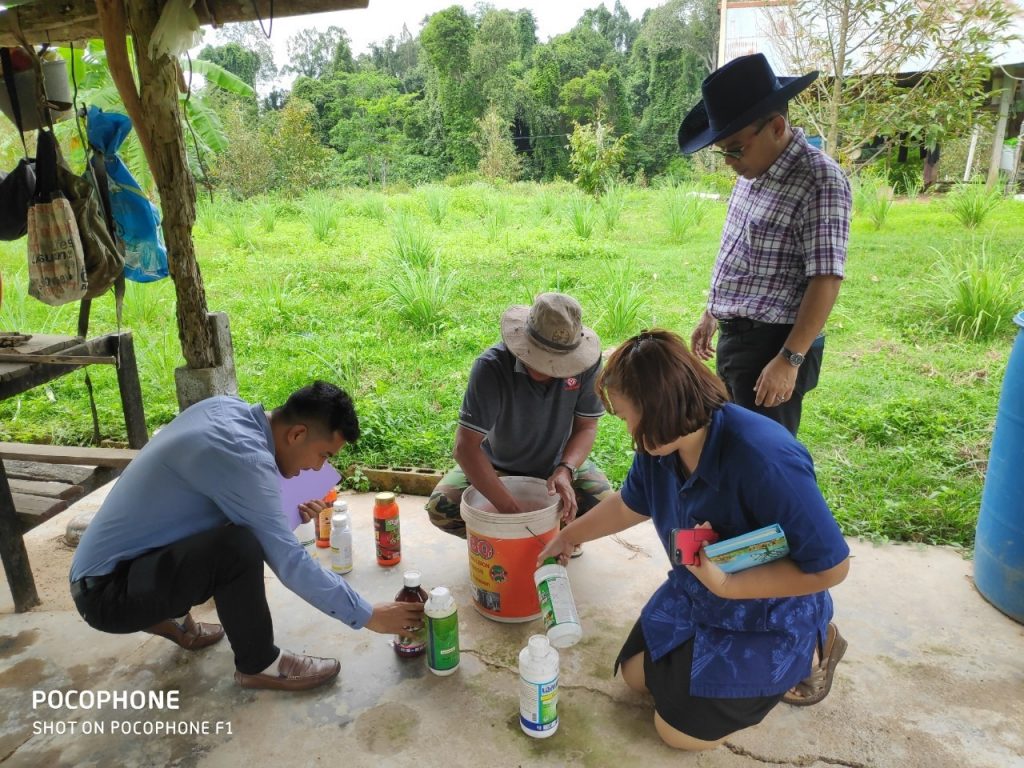 วันที่ 15 พฤศจิกายน 2562 นายชัยพร นุภักดิ์ ผู้อำนวยการศูนย์ส่งเสริมเทคโนโลยีการเกษตรด้านอารักขาพืชจังหวัดสุราษฎร์ธานี พร้อมด้วยเจ้าหน้าจากศทอ.สฎ. เข้าสำรวจและติดตามแปลงทุเรียนของนายพิรุณ นักบริตน พื้นที่หมู่ที่ 4 ตำบลท่าข้าม อำเภอพุนพิน จังหวัดสุราษฎร์ธานี พื้นที่ ปลูกทุเรียน 14 ไร่ อายุ 3 ปี ซึ่งพบปัญหาใบทุเรียนแห้งไหม้บริเวณปลายใบ และเกิดการระบาดของเพลี้ยหอย จากการสอบถามเบื้องต้นเกษตรกรใช้สารเคมีผิดวิธี เจ้าหน้าที่จึงได้แนะนำวิธีการใช้สารเคมีที่ถูกต้อง พร้อมทั้งแนะนำวิธีการฟื้นต้นทุเรียนและการป้องกันกำจัดเพลี้ยหอยในแปลง