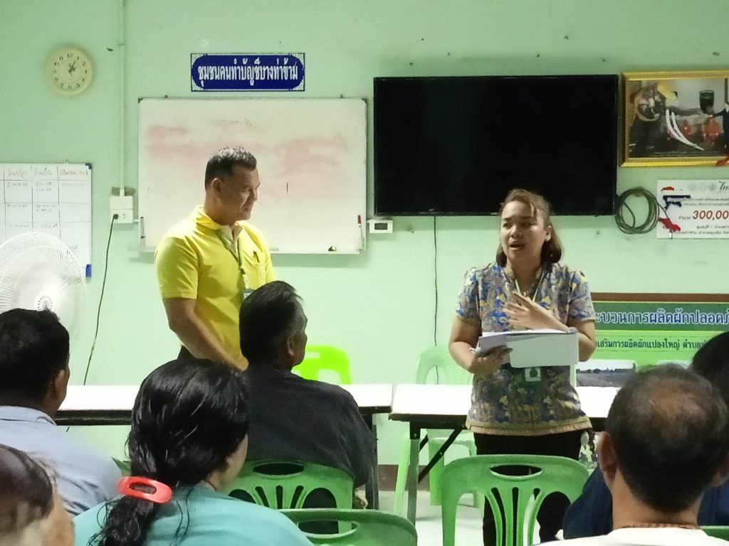 วันที่ 19 พฤศจิกายน 2562 นายชัยพร นุภักดิ์ ผู้อำนวยการศูนย์ส่งเสริมเทคโนโลยีการเกษตรด้านอารักขาพืชจังหวัดสุราษฎร์ธานี มอบหมายให้นางชนิดา ตะเภาน้อย นักวิชาการส่งเสริมการเกษตรชำนาญการ และนายจิรยุทธ จิตราภิรมย์ นักวิชาการส่งเสริมการเกษตร เข้าร่วมดำเนินการโรงเรียนเกษตรกร (ผัก) ครั้งที่ 3 ร่วมกับสำนักงานเกษตรจังหวัดสุราษฎร์ธานีและสำนักงานเกษตรอำเภอพุนพิน ณ. แปลงใหญ่ผักบางท่าข้าม ตำบลท่าข้าม อำเภอพุนพิน จังหวัดสุราษฎร์ธานี โดยในครั้งนี้ได้ดำเนินการจัดกิจกรรมแลกเปลี่ยนเรียนรู้ข้อมูลการใช้สารเคมีของสมาชิกภายในกลุ่มและแนะนำการใช้สารเคมีที่ถูกต้องและปลอดภัย พร้อมทั้งรายงานสถานการณ์การระบาดศัตรูพืชที่ทางศทอ.สฎได้ตรวจพบในสัปดาห์นี้เพื่อให้ทางสมาชิกกลุ่มได้เฝ้าระวังการระบาดในแปลงของสมาชิกต่อไป