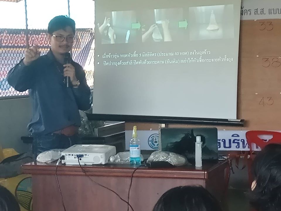 วันที่ 22 มกราคม 2563 นายชัยพร นุภักดิ์ ผู้อำนวยการศูนย์ส่งเสริมเทคโนโลยีการเกษตรด้านอารักขาพืชจังหวัด สุราษฎร์ธานี มอบหมายให้นางชนิดา ตะเภาน้อย นักวิชาการส่งเสริมการเกษตรชำนาญการ นายภาณุรักษ์ ประทับกอง นักวิชาการส่งเสริมการเกษตร และนายปัญจ์ชิเน เชื้อชาญพล นักวิชาการส่งเสริมการเกษตร ร่วมกับเจ้าหน้าที่สำนักงานเกษตรอำเภอหัวไทรจังหวัดนครศรีธรรมราช ให้ความรู้เกี่ยวกับการป้องกันกำจัดศัตรูพืชแบบผสมผสาน และสาธิตการผลิตขยายเชื้อราบิวเวอเรียเพื่อใช้ในการป้องกันกำจัดแมลงศัตรูพืช พร้อมทั้งสนับสนุนปัจจัยการผลิตขยายเชื้อจุลินทรีย์ ตามโครงการพัฒนาพื้นที่ลุ่มน้ำปากพนัง กิจกรรมโรงเรียนเกษตรกรข้าวโดยการดำเนินกิจกรรมตามกระบวนการโรงเรียนเกษตรกร กลุ่มเป้าหมายเกษตรกรผู้ปลูกข้าวจำนวน 20 ราย ณ ศาลาหมู่บ้านหมู่ที่ 5 ตำบลรามแก้ว อำเภอหัวไทร จังหวัดนครศรีธรรมราช