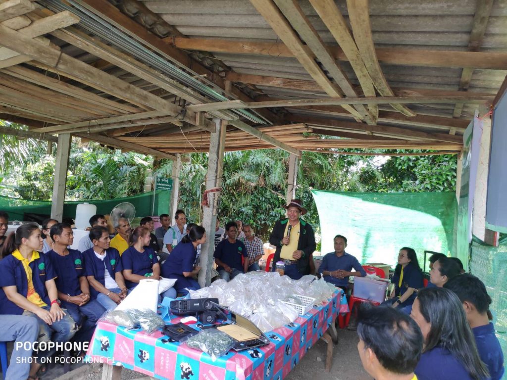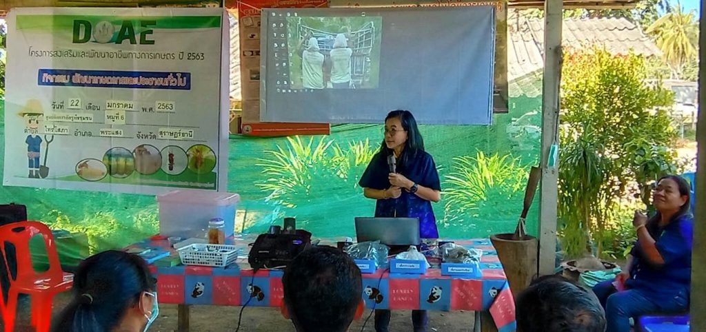 วันที่ 22 มกราคม 2563 นายชัยพร นุภักดิ์ ผู้อำนวยการศูนย์ส่งเสริมเทคโนโลยีการเกษตรด้านอารักขาพืชจังหวัด สุราษฎร์ธานี มอบหมายให้ นางพรทิพย์ สมวงศ์ นักวิชาการส่งเสริมการเกษตรชำนาญการ และเจ้าหน้าที่ ศทอ.สฎ จัดฝึกอบรมโครงการส่งเสริมและพัฒนาอาชีพทางการเกษตร ประจำปีงบประมาณ 2563 กิจกรรมพัฒนาเกษตรกรทั่วไป หลักสูตรการจัดการศัตรูพืชแบบผสมผสานและการผลิตขยายศัตรูธรรมชาติ ณ ศูนย์จัดการศัตรูพืชชุมชน หมูที่ 6 ตำบลไทรโสภา อำเภอพระแสง จังหวัดสุราษฎร์ธานี