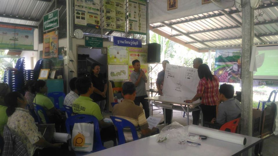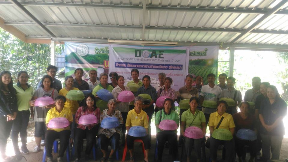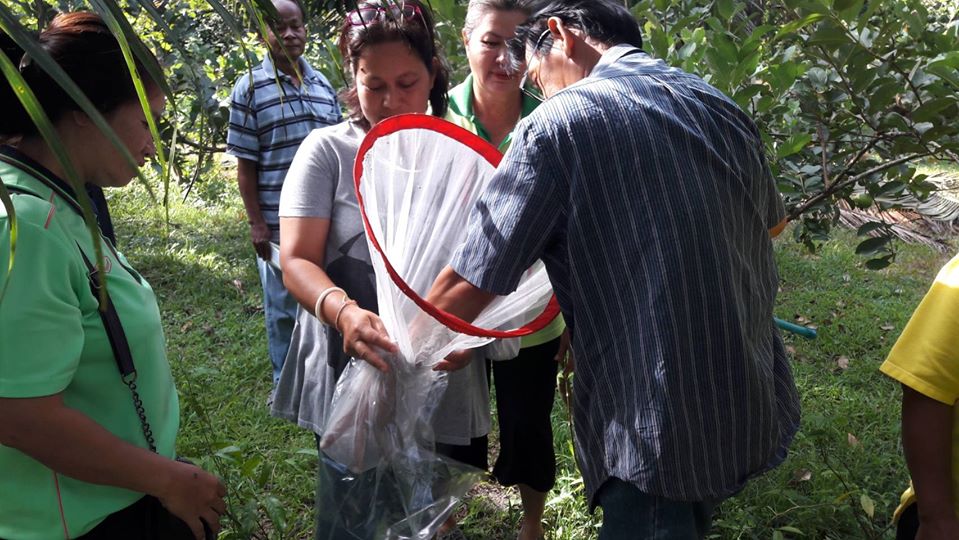 วันที่ 5-6 กุมภาพันธ์ 2563 นายชัยพร นุภักดิ์ ผู้อำนวยการศูนย์ส่งเสริมเทคโนโลยีการเกษตรด้านอารักขาพืชจังหวัดสุราษฎร์ธานี มอบหมายให้นางชนิดา ตะเภาน้อย นักวิชาการส่งเสริมการเกษตรชำนาญการ นายภาณุรักษ์ ประทับกอง นักวิชาการส่งเสริมการเกษตร และเจ้าหน้าที่ ศทอ.สฎ พร้อมด้วยเจ้าหน้าที่กลุ่มอารักขาพืช จังหวัดกระบี่ และเจ้าหน้าที่สำนักงานเกษตรอำเภอเมือง จังหวัดกระบี่ จัดฝึกอบรมโครงการส่งเสริมและพัฒนาอาชีพทางการเกษตร ประจำปีงบประมาณ 2563 กิจกรรมฝึกอาชีพแกนนำและเครือข่าย หลักสูตรการควบคุมศัตรูพืชโดยชีววิธีและการผลิตขยายศัตรูธรรมชาติ ณ. ศูนย์เรียนรู้การเพิ่มประสิทธิภาพสินค้าเกษตรตำบลทับปริก ตำบลทับปริก อำเภอเมือง จังหวัดกระบี่ โดยมีการถ่ายทอดความรู้การจำแนกแมลงทางการเกษตร เพื่อให้เกษตรกรเรียนรู้แมลงที่มีประโยชน์ทางการเกษตร และแมลงศัตรูพืช และวิธีการป้องกันกำจัดศัตรูพืชโดยวิธีผสมผสาน รวมทั้งฝึกปฏิบัติการผลิตขยายแมลงหางหนีบและการผลิตขยายเชื้อบิวเวอเรียเพื่อกำจัดแมลงศัตรูพืช โดยมีเกษตรกรเข้าร่วม 32 ราย