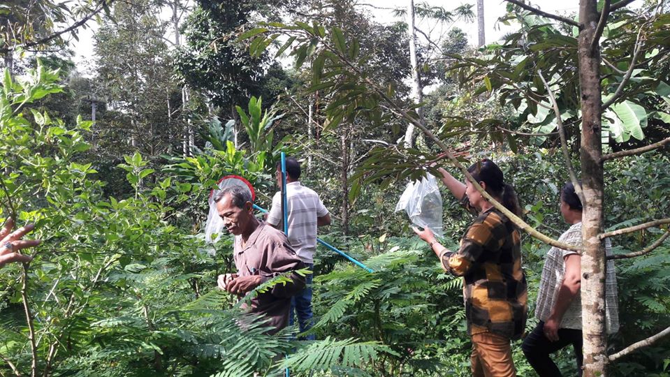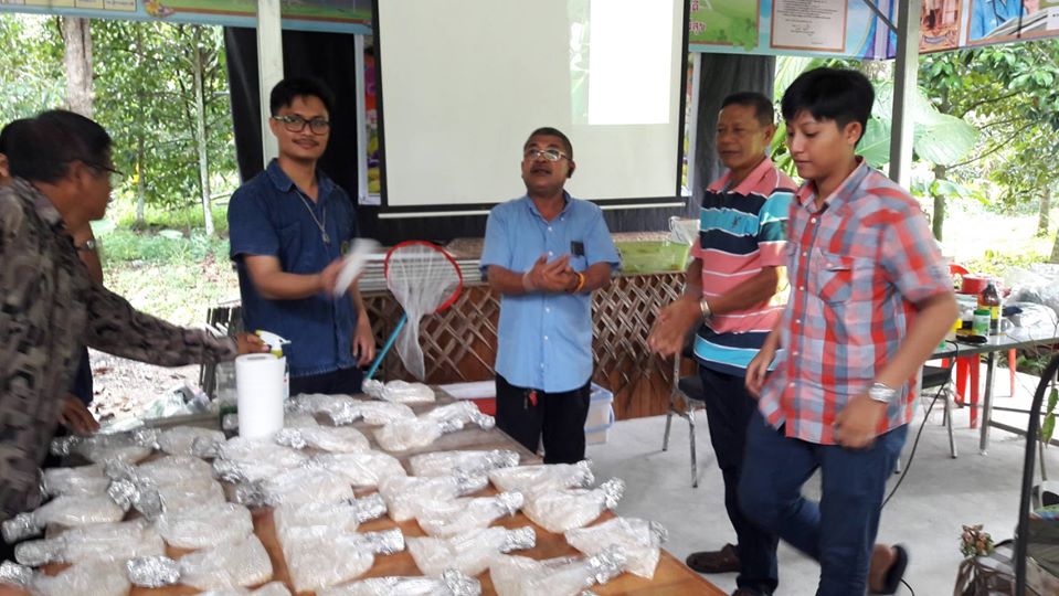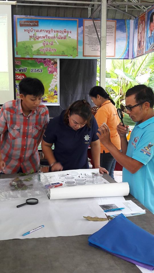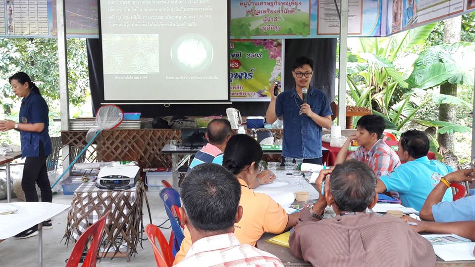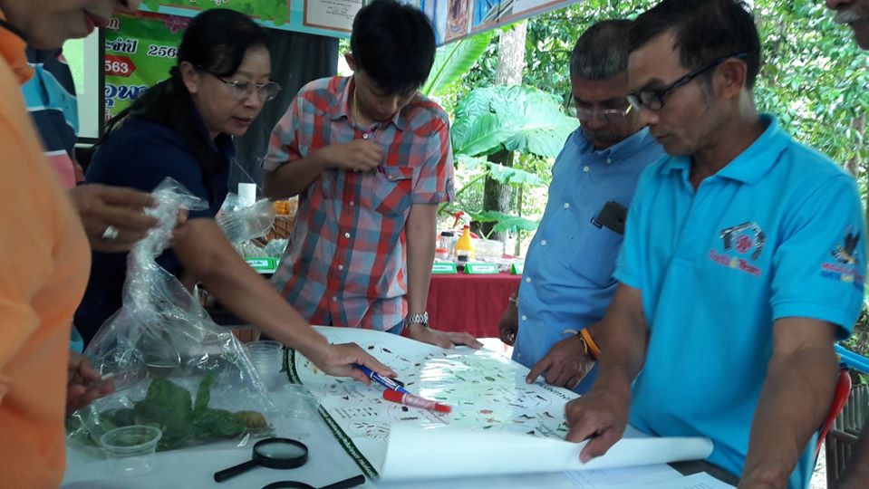 วันที่ 13 กุมภาพันธ์ 2563 นายชัยพร นุภักดิ์ ผู้อำนวยการศูนย์ส่งเสริมเทคโนโลยีการเกษตรด้านอารักขาพืชจังหวัดสุราษฎร์ธานี มอบหมายให้นางชนิดา ตะเภาน้อย นักวิชาการส่งเสริมการเกษตรชำนาญการ และนายภาณุรักษ์ ประทับกอง ร่วมกับเจ้าหน้าที่สำนักงานเกษตรอำเภอลานสกา จังหวัดนครศรีธรรมราช ให้ความรู้เรื่องศัตรูไม้ผลและการป้องกันกำจัดศัตรูพืชโดยวิธีผสมผสาน และการจำแนกชนิดแมลงในแปลงเกษตร พร้อมทั้งสาธิตวิธีการเพาะเลี้ยงแมลงหางหนีบและการผลิตขยายเชื้อราบิวเวอเรียเพื่อใช้ในการป้องกันกำจัดแมลงศัตรูพืช และสนับสนุนปัจจัยการผลิตขยายเชื้อจุลินทรีย์ ตามโครงการพัฒนาพื้นที่ลุ่มน้ำปากพนัง กิจกรรมโรงเรียนเกษตรกรไม้ผล โดยการดำเนินกิจกรรมตามกระบวนการโรงเรียนเกษตรกร กลุ่มเป้าหมายเกษตรกรผู้ปลูกไม้ผลจำนวน 20 ราย ณ ศาลาหมู่ที่ 11 ตำบลขุนทะเล อำเภอลานสกา จังหวัดนครศรีธรรมราช