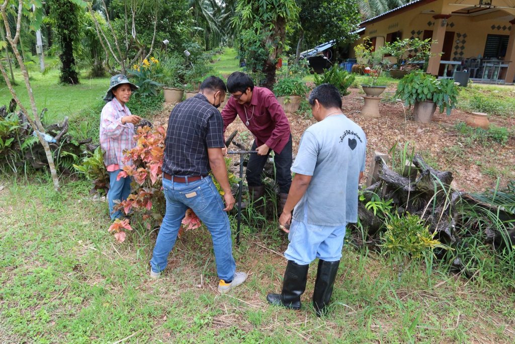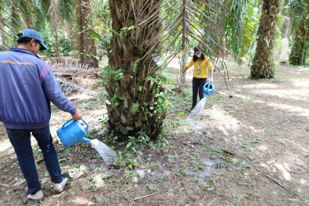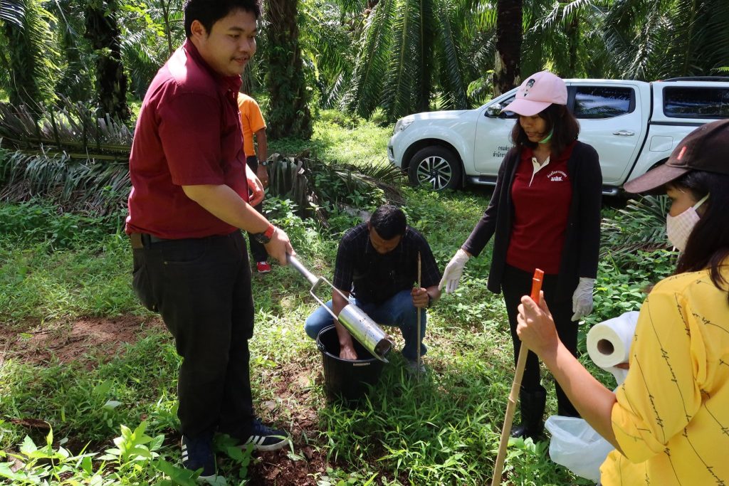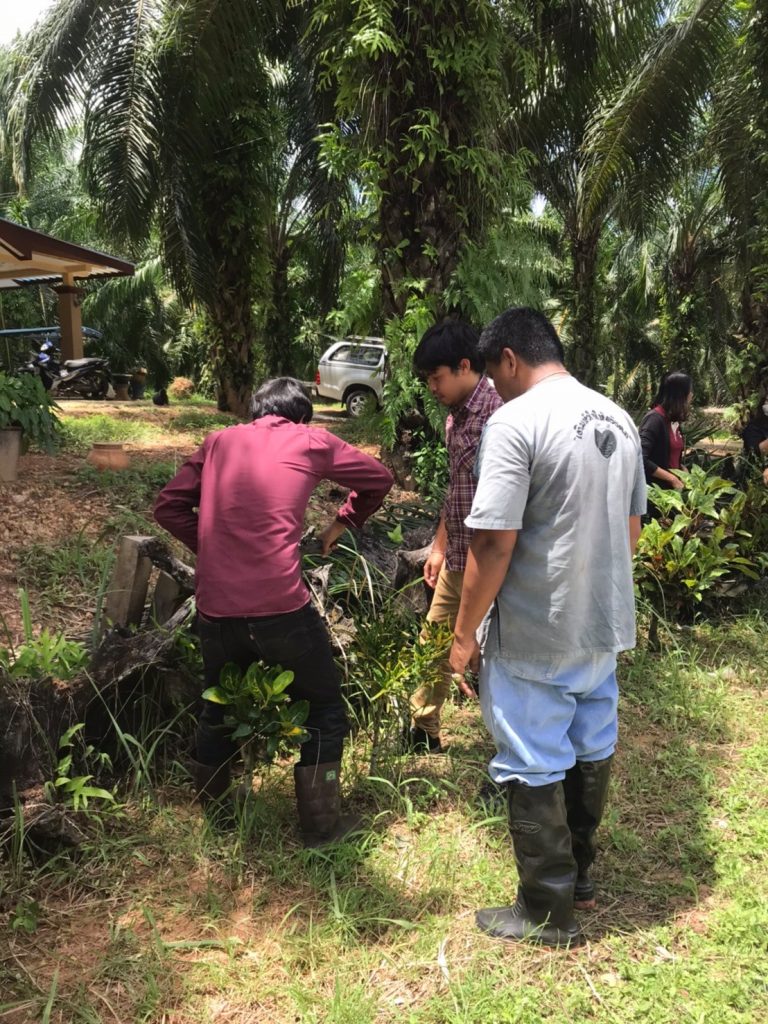 วันที่ 4 มิถุนายน 2563 นายชัยพร นุภักดิ์ ผอ.ศูนย์ส่งเสริมเทคโนโลยีการเกษตรด้านอารักขาพืช จังหวัดสุราษฎร์ธานี มอบหมายให้เจ้าหน้าที่ศูนย์ส่งเสริมเทคโนโลยีการเกษตรด้านอารักขาพืช จังหวัดสุราษฎร์ธานีร่วมกับ นายประสงค์ บุญเจริญ หัวหน้ากลุ่มอารักขาพืชและ เจ้าหน้าที่กลุ่มอารักขาพืช สำนักงานเกษตรจังหวัดชุมพร ร่วมดำเนินการจัดทำแปลงทดสอบเทคโนโลยีการควบคุมโรคลำต้นเน่าปาล์มน้ำมัน สาเหตุเกิดจากเชื้อรากาโนเดอร์มา ณ พื้นที่ ตำบล นากระตาม อำเภอท่าแซะ จังหวัดชุมพร โดย ศทอ.สฎ.ได้นำเชื้อราไตรโคเดอร์ม่าสนับสนุนในการทดสอบดังกล่าว