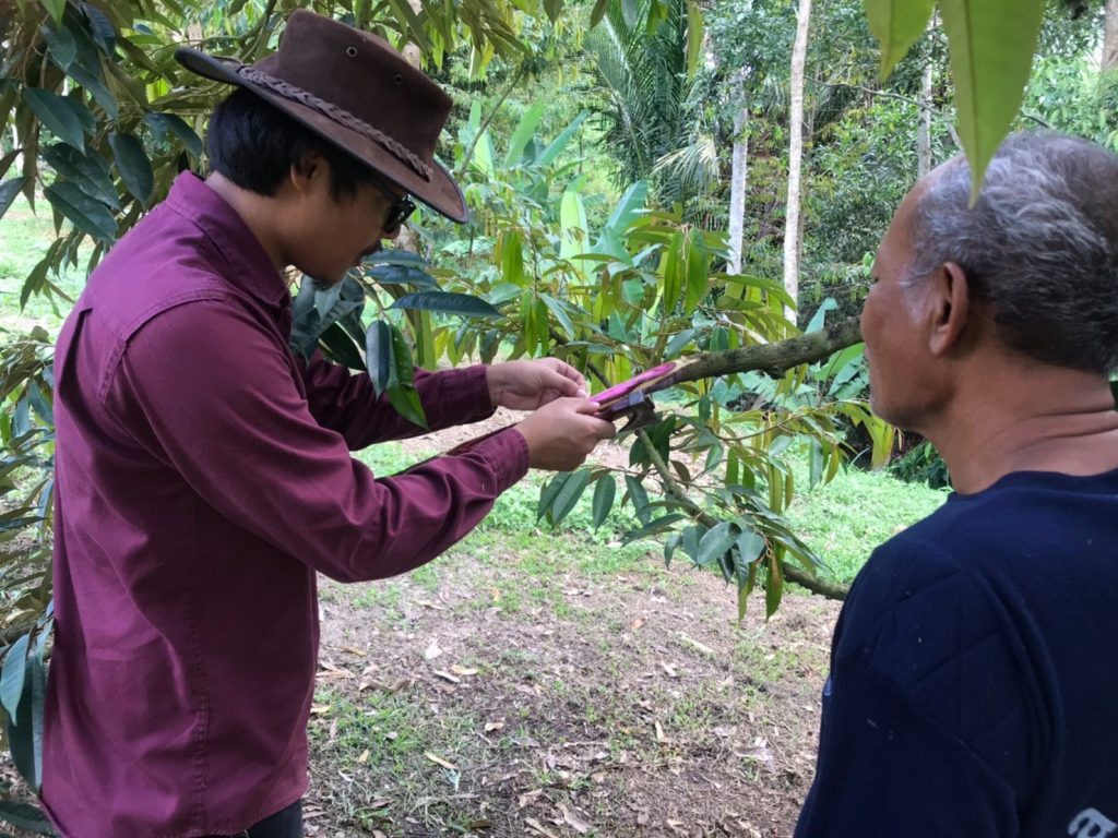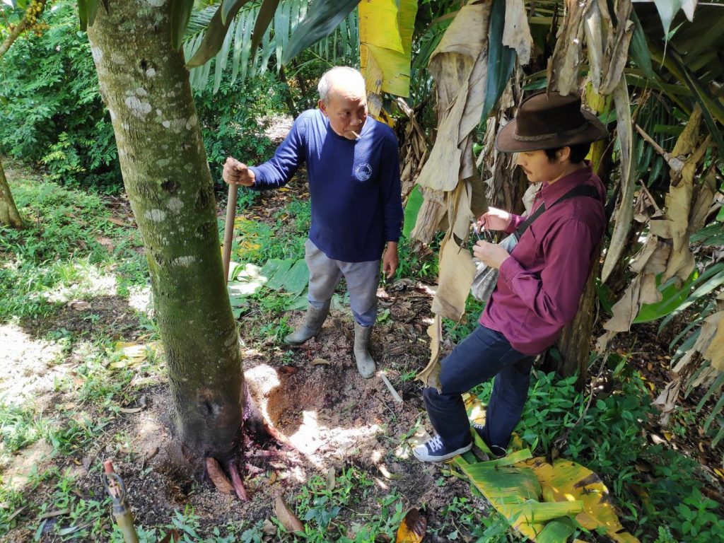 วันที่ 22 มิถุนายน 2563 นายชัยพร นุภักดิ์ ผู้อำนวยการศูนย์ส่งเสริมเทคโนโลยีการเกษตรด้านอารักขาพืช จังหวัดสุราษฎร์ธานี มอบหมายให้ นายภาณุรักษ์ ประทับกอง นักวิชาการส่งเสริมการเกษตร ลงพื้นที่แนะนำวีธีการการรักษาแผลโรครากเน่าโคนเน่าทุเรียนโดยใช้เชื้อราไตรโคเดอร์มา ให้แก่ นายจำเนียร ชุมทอง ณ บ้านเลขที่ 61/1 หมู่ที่ 11 ตำบลบ้านส้อง อำเภอบ้านส้อง จังหวัดสุราษฎร์ธานี