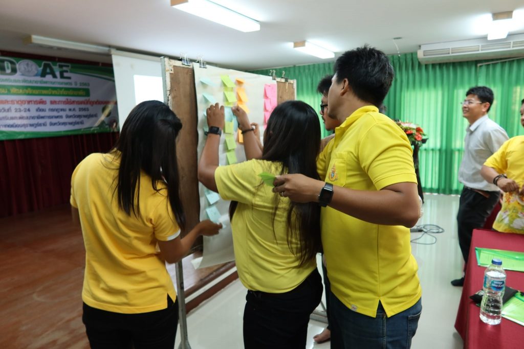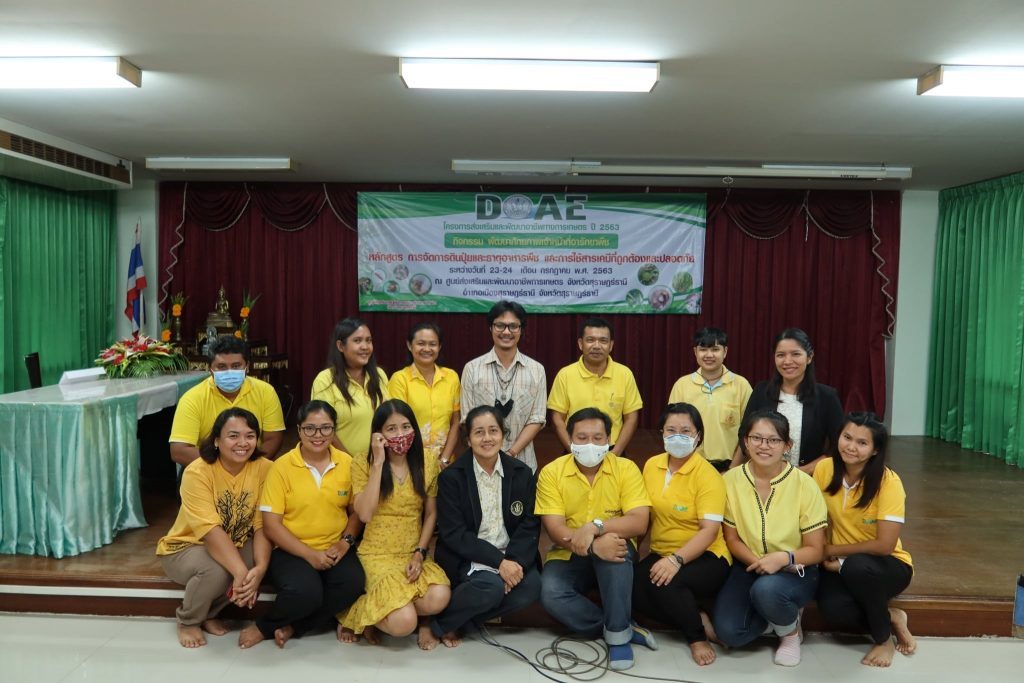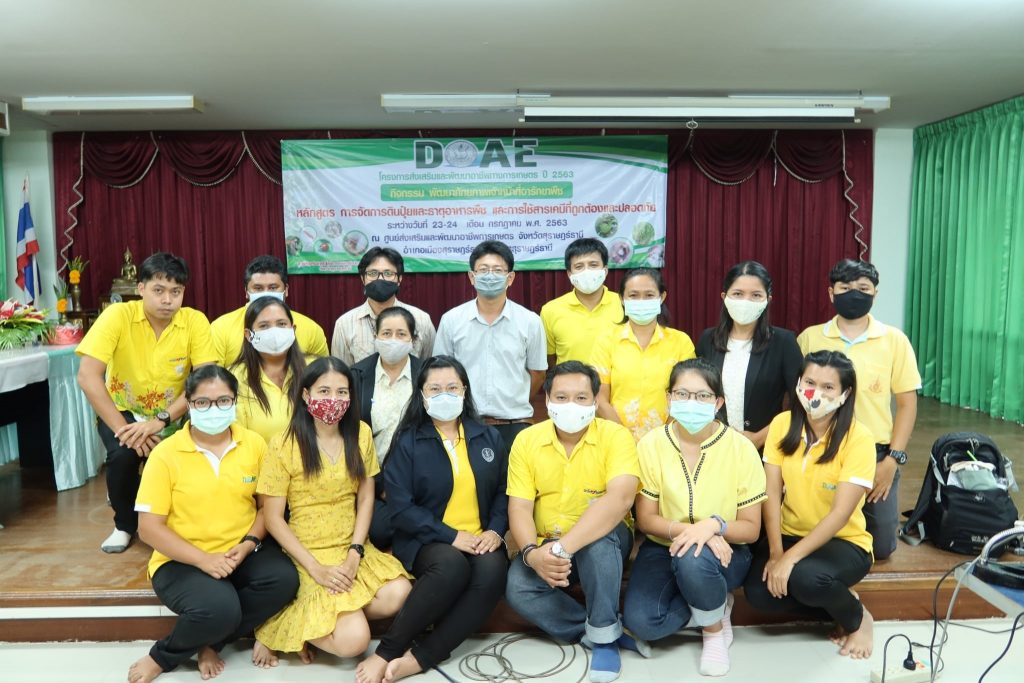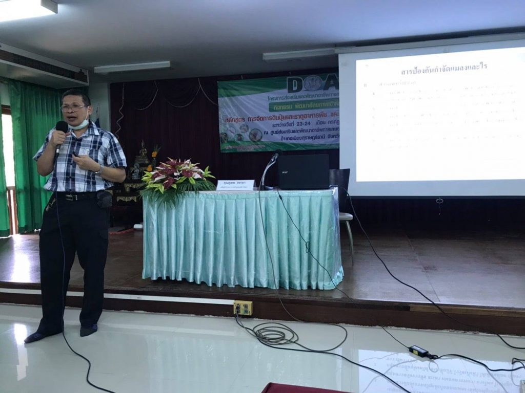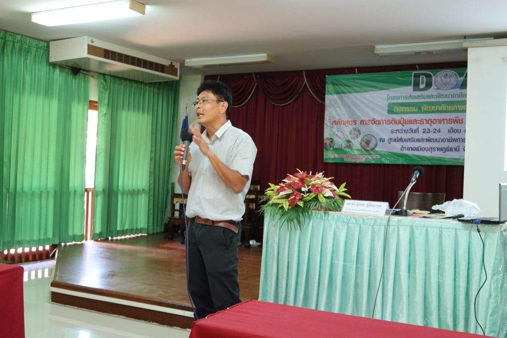 วันที่ 23-24 กรกฎาคม 2563 นายชัยพร นุภักดิ์ ผู้อำนวยการศูนย์ส่งเสริมเทคโนโลยีการเกษตรด้านอารักขาพืชจังหวัดสุราษฎร์ธานี พร้อมเจ้าหน้าที่ศทอ.สฎ. ได้จัดฝึกอบรมโครงการส่งเสริมและพัฒนาอาชีพทางการเกษตร ประจำปี 2563 กิจกรรม พัฒนาศักยภาพเจ้าหน้าที่อารักขาพืช ให้แก่เจ้าที่ศทอ.สฎ และเจ้าหน้าที่อารักขาพืชระดับจังหวัดในเขตพื้นที่ภาคใต้ตอนบน จังหวัดละ 2 คน ซึ่งมีหลักสูตรดังนี้ การจัดการดินปุ๋ยและธาตุอาหารสำหรับพืช วิทยากร ผศ.ดร.สุรพล ฐิติธนากุลมหาวิทยาลัยสงขลานครินทร์วิทยาเขตสุราษฎร์ธานี และการใช้สารเคมีป้องกันกำจัดศัตรูพืชที่ถูกต้องและปลอดภัย วิทยากร คุณสุเทพ สหายา อดีตผู้อำนวยการกลุ่มกีฎและสัตววิทยา สำนักวิจัยและพัฒนาการอารักขาพืช กรมวิชาการเกษตร โดยมีวัตถุประสงค์ เพื่อเพิ่มพูนความรู้ด้านวิชาการรวมทั้งนวัตกรรมในการป้องกันกำจัดศัตรูพืช การใช้สารเคมีป้องกันกำจัดศัตรูพืชที่ถูกต้องและปลอดภัย รวมทั้งการจัดการดินปุ๋ยและละธาตุอาหารพืชให้แก่เจ้าหน้าที่ของศูนย์ส่งเสริมเทคโนโลยีการเกษตรด้านอารักขาพืช จังหวัดสุราษฎร์ธานี และเจ้าหน้าที่อารักขาพืชระดับจังหวัดเพื่อนำความรู้ที่ได้ไปถ่ายทอดให้แก่เจ้าหน้าที่ส่งเสริมการเกษตรระดับอำเภอและเกษตรกร มีผู้เข้าร่วมอบรม และผู้สังเกตการณ์จำนวนทั้งสิ้น 25 ราย