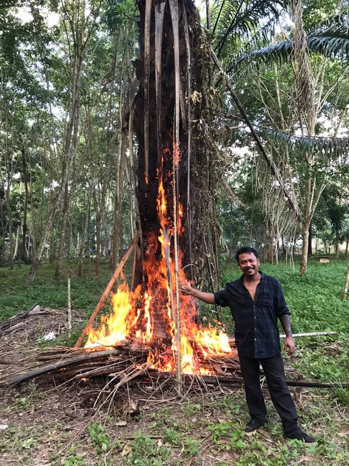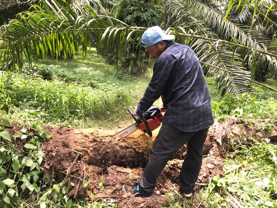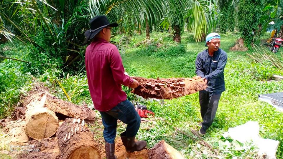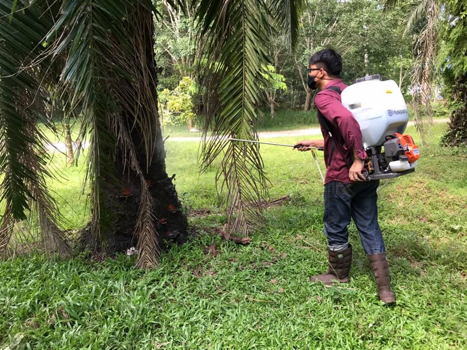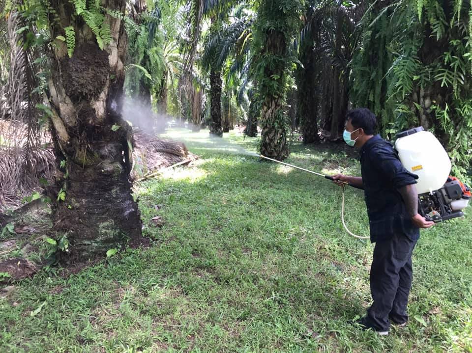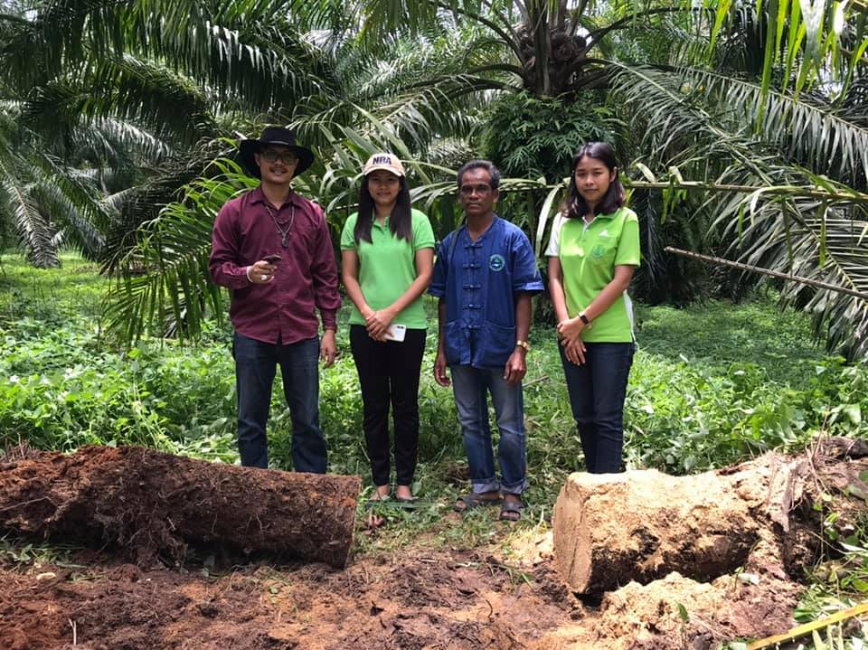 วันที่ 19 สิงหาคม 2563 นายชัยพร นุภักดิ์ ผู้อำนวยการศูนย์ส่งเสริมเทคโนโลยีการเกษตรด้านอารักขาพืชจังหวัดสุราษฎร์ธานี มอบหมายให้ นายภาณุรักษ์ ประทับกอง นักวิชาการส่งเสริมการเกษตรลงพื้นที่ติดตามสถานการณ์การระบาดพร้อมเก็บตัวอย่างเห็ดการ์โนเดอมา เชื้อสาเหตุโรคลำต้นเน่าปาล์มน้ำมัน ในพื้นที่ตำบลนากระตาม อำเภอท่าแซะ จังหวัดชุมพรเพื่อนำไปทดลองในห้องปฏิบัติการ โดยมีนางสาวน้ำฝน ลือขจร นักวิชาการส่งเสริมการเกษตรชำนาญการและนางสาวชฎารัตน์ พรหมศิลา นักวิชาการส่งเสริมการเกษตรปฏิบัติการจากกลุ่มอารักขาพืช สำนักงานเกษตรจังหวัดชุมเข้าร่วมกิจกรรมในครั้งนี้ด้วย