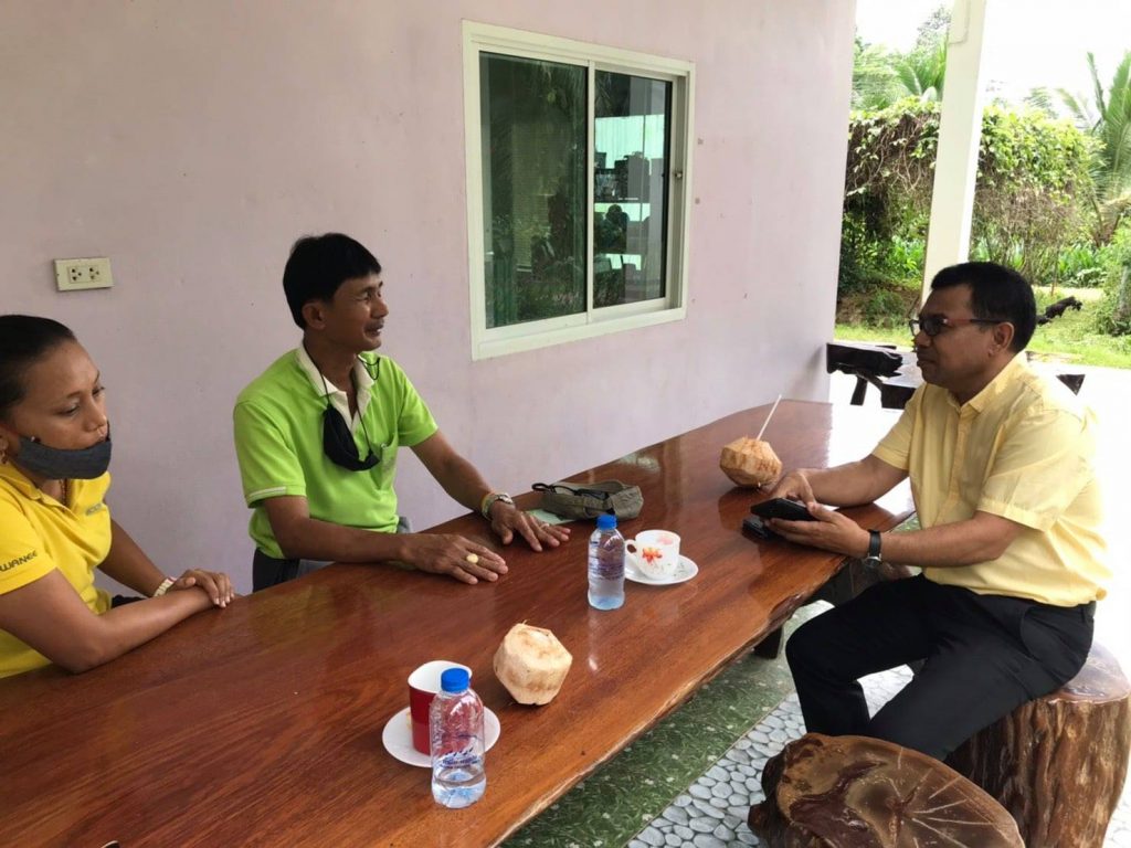 วันที่ 12 ตุลาคม 2563 นายชัยพร นุภักดิ์ ผู้อำนวยการศูนย์ส่งเสริมเทคโนโลยีการเกษตรด้านอารักขาพืช จังหวัดสุราษฎร์ธานี พร้อมด้วยนายภาณุรักษ์ ประทับกอง นักวิชาการส่งเสริมการเกษตรลงพื้นที่ตรวจสอบความผิดปกติของใบมะพร้าวน้ำหอม ของนายก้องกษิต สุวรรณวิหค ในเขตพื้นที่เทศบาลอำเภอพุนพิน จังหวัดสุราษฎร์ธานี หลังตรวจสอบพบว่าใบมะพร้าวถูกทำลายโดยแมลงดำหนามจึงแนะนำวิธีการป้องกันกำจัดโดยวิธีกล และใช้สารชีวภัณฑ์เชื้อราบิวเวอร์เรียโดยการฉีดให้ถูกตัว