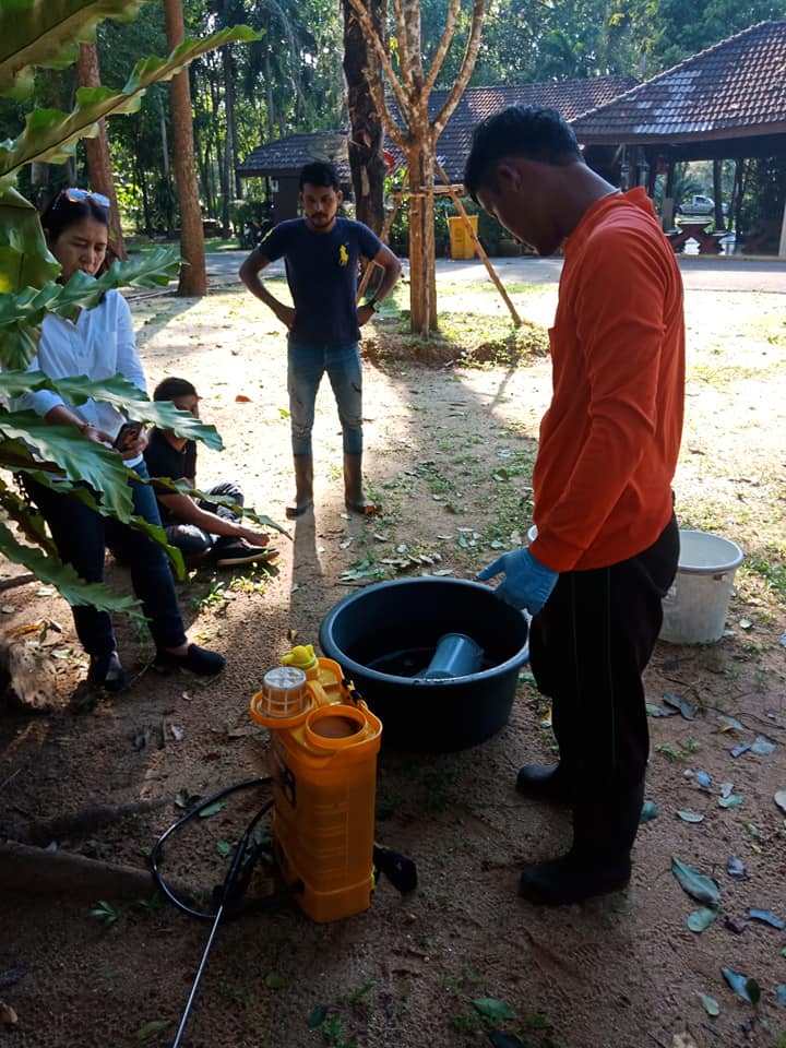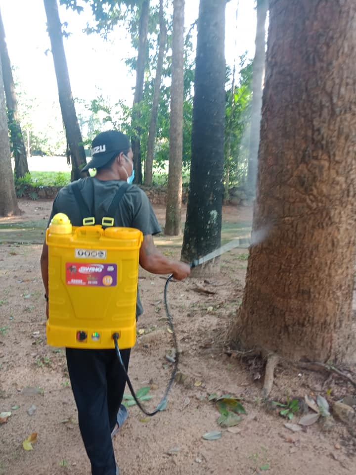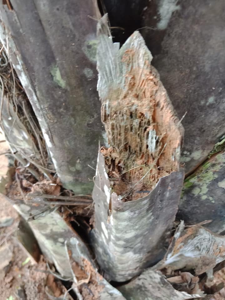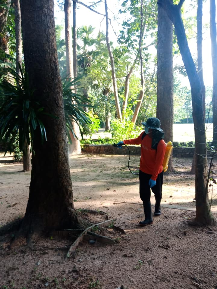 วันที่ 24 พฤศจิกายน 2563 นายชัยพร นุภักดิ์ ผู้อำนวยการศูนย์ส่งเสริมเทคโนโลยีการเกษตรด้านอารักขาพืชจังหวัดสุราษฎร์ธานี พร้อมเจ้าหน้าที่ศูนย์เข้าติดตามการระบาดศัตรูพืชในพื้นที่อำเภอพุนพิน จังหวัดสุราษฎร์ธานีโดยพบต้นปาล์มประดับ ยืนต้นตายจำนวน 1 ต้น และพบทางใบแห้งซึ่งไม่พบการทำลายของแมลงศัตรูพืช นอกจากนี้ยังพบการทำลายจากปลวกเนื่องจากบริเวณเนื้อไม้ถูกทำลายและในส่วนของต้นอื่นพบโรคยอดเน่าจากเชื้อรา ซึ่งทางศูนย์ ได้นำเชื้อราไตรโคเดอร์ม่าช่วยในการป้องกันกำจัด และยังพบการเข้าทำลายของปลวกในต้นอื่นๆโดยศูนย์ได้นำสารสกัดสะเดาไปใช้ฉีดพ่นเพื่อทำลายต่อไป
