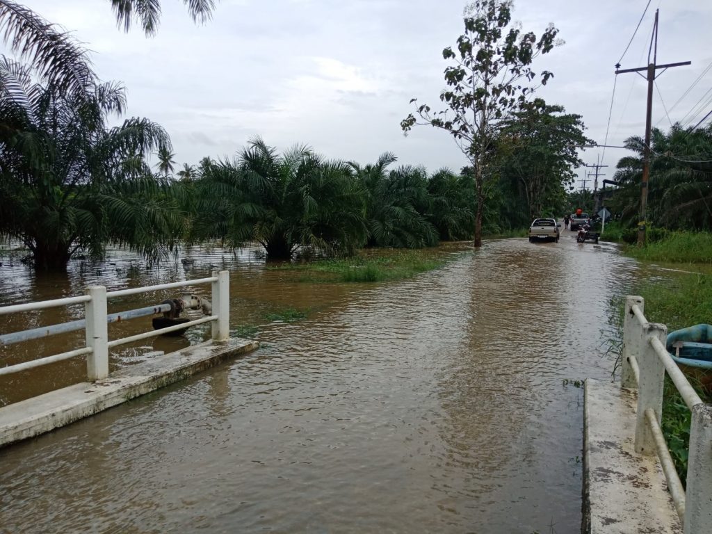 วันที่ 3 ธันวาคม 2563 นายชัยพร นุภักดิ์ ผู้อำนวยการศูนย์ส่งเสริมเทคโนโลยีการเกษตรด้านอารักขาพืช จังหวัดสุราษฎร์ธานี และนาย ปัญจ์ชิเน เชื้อชาญพล นักวิชาการส่งเสริมการเกษตร ลงพื้นที่ติดตามสถานการณ์น้ำท่วมที่โรงเรียนเกษตรกรผักแปลงใหญ่บางท่าข้าม อำเภอพุนพิน จังหวัดสุราษฎร์ธานี โดยพื้นที่ส่วนใหญ่ได้รับผลกระทบจากน้ำท่วม ทำให้เกิดความเสียหายต่อแปลงผักของเกษตรกร