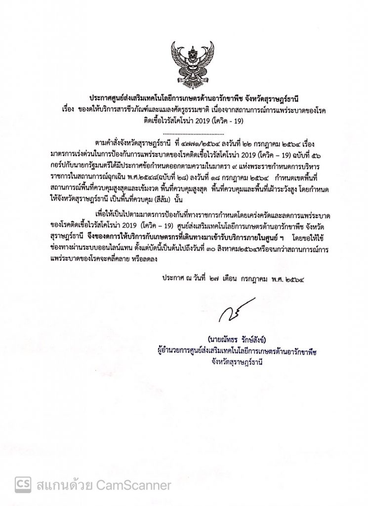 เนื่องจากการแพร่ระบาดของโรคติดต่อเชื้อไวรัสโคโรน่า 2019 (โควิด-19) ตั้งแต่บัดนี้เป็นต้นไปจนถึง 30 สิงหาคม 2564 หรือจนกว่าสถานการณ์ของโรคจะคลี่คลาย