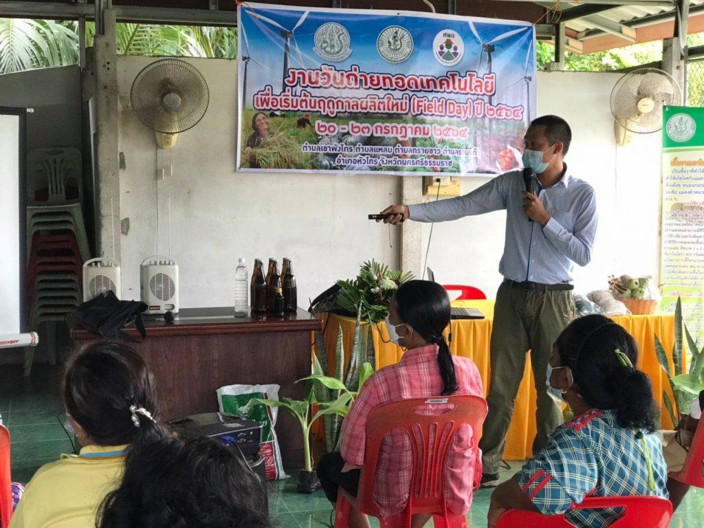 วันที่ 23 กรกฎาคม 2564 นางสาวนิสิตา เพชรา นักวิชาการส่งเสริมการเกษตรปฏิบัติการ นายปัญจ์ขิเน เชื้อชาญพลนักวิชาการส่งเสริมการเกษตร และนายภาณุรักษ์ ประทับกอง นักวิชาการส่งเสริมการเกษตร ศูนย์ส่งเสริมเทคโนโลยีการเกษตรด้านอารักขาพืช จังหวัดสุราษฎร์ธานี เข้าร่วมงานถ่ายทอดเทคโนโลยีเพื่อเริ่มต้นฤดูการใหม่(Field Day) ปี 2564 โดยถ่ายทอดความรู้ด้านการป้องกันกำจัดศัตรูแบบผสมผสาน เป็นการจัดฝึกอบรมในหัวข้อเรื่อง การป้องกันกำจัดแมลงศัตรูพืชและโรคพืชแบบผสมผสาน นอกจากนี้ได้สาธิตการทำสารสกัดสะเดา ณ ม.5 ต.รามแก้ว อ.หัวไทร จ.นครศรีธรรมราช