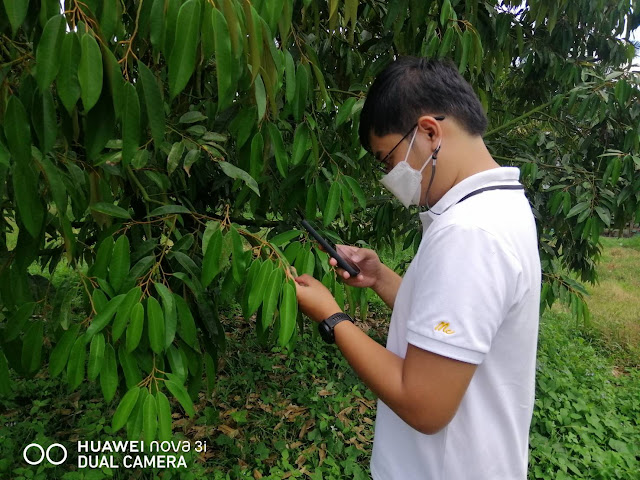 วันที่ 28 กันยายน 2564 นายจิรยุทธ จิตราภิรมย์ นักวิชาการส่งเสริมการเกษตรปฏิบัติการ และนายสุทธิศักดิ์ ทองโอ นักวิชาการส่งเสริมการเกษตรปฏิบัติการ ศูนย์ส่งเสริมเทคโนโลยีการเกษตรด้านอารักขาพืชจังหวัดสุราษฎร์ธานี ลงพื้นที่แปลงติดตามสถานะการณ์ศัตรูพืช ณ แปลงทุเรียนของศูนย์ส่งเสริมเทคโนโลยีการเกษตรด้านอารักขาพืชจังหวัดสุราษฎร์ธานี และแปลงทุเรียนของเกษตรกร ตำบลวัดประดู่ อำเภอเมืองจังหวัดสุราษฎร์ธานี พบมีการระบาดของโรคใบจุดส่าหร่าย เนื่องจากเป็นช่วงฝนตกชุกสาเหตุเกิดสาหร่าย Cephaleuros virescens ลักษณะอาการส่วนใหญ่แล้วจะเกิดที่ใบ เกิดจุดค่อนข้างกลม เป็นขุยสีเขียว ต่อมาในระยะเกิดสปอร์จะเป็นสีแดง สีสนิมเหล็ก ผิวมีลักษณะเป็นขุย คล้ายกำมะหยี่ หากพบการระบาดควรกำจัดวัชพืชในแปลงปลูก เพื่อให้อากาศถ่ายเทได้ดี เป็นการลดความชื้นสะสมและหมั่นตรวจแปลงปลูกอย่างสม่ำเสมอ เมื่อพบอาการโรคควรมีการตัดแต่งกิ่งให้โปร่ง และป้องกันกำจัดโรค โดยพ่นสารป้องกันกำจัดโรคพืช ด้วยสารประเภทสัมผัส เช่น สารกลุ่มคอปเปอร์