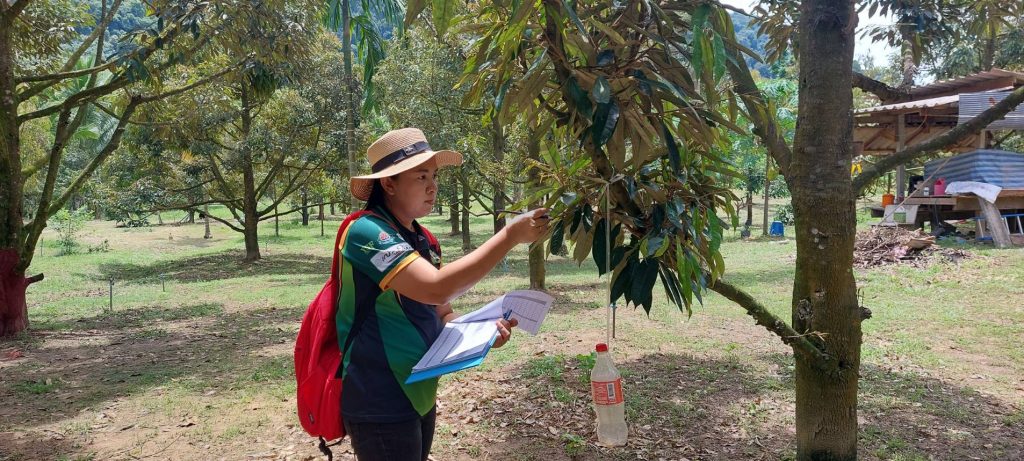 วันที่ 31 สิงหาคม 2565 นายจิรยุทธ จิตราภิรมย์ นักวิชาการส่งเสริมการเกษตรปฏิบัติการ ลงพื้นที่เก็บข้อมูลแปลงต้นแบบติดตามสถานการณ์การระบาดศัตรูพืช ในแปลงทุเรียน จำนวน 4 แปลง ร่วมกับนางสาวสุรัตน์วดี ศรีเมือง นักวิชาการส่งเสริมการเกษตรปฏิบัติการ จากสำนักงานเกษตรจังหวัดสุราษฎร์ธานี เพื่อเป็นต้นแบบในการพยากรณ์ศัตรูพืชและวางแผนควบคุมศัตรูพืชเพื่อเป็นต้นแบบให้เกษตรกรพร้อมทั้งสนุบสนุนชีวภัณฑ์เพื่อนำไปใช้ควบคุมศัตรูพืช ณ พื้นที่ตำบลป่าร่อน อำเภอกาญจนดิษฐ์ จังหวัดสุราษฎร์ธานี