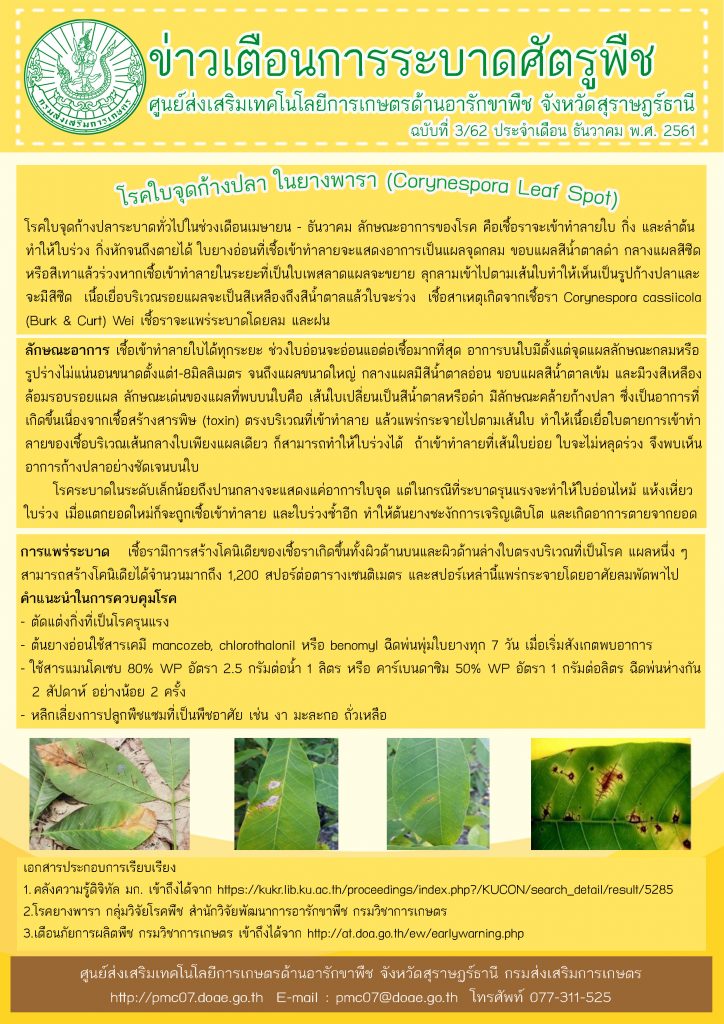 โรคใบจุดก้างปลาในยางพารา niyada 2018-12-10 2019-03-28 ไม่มีความเห็น บน โรคใบจุดก้างปลาในยางพารา ข่าวเตือนการระบาด เรื่อง โรคใบจุดก้างปลาในยางพารา