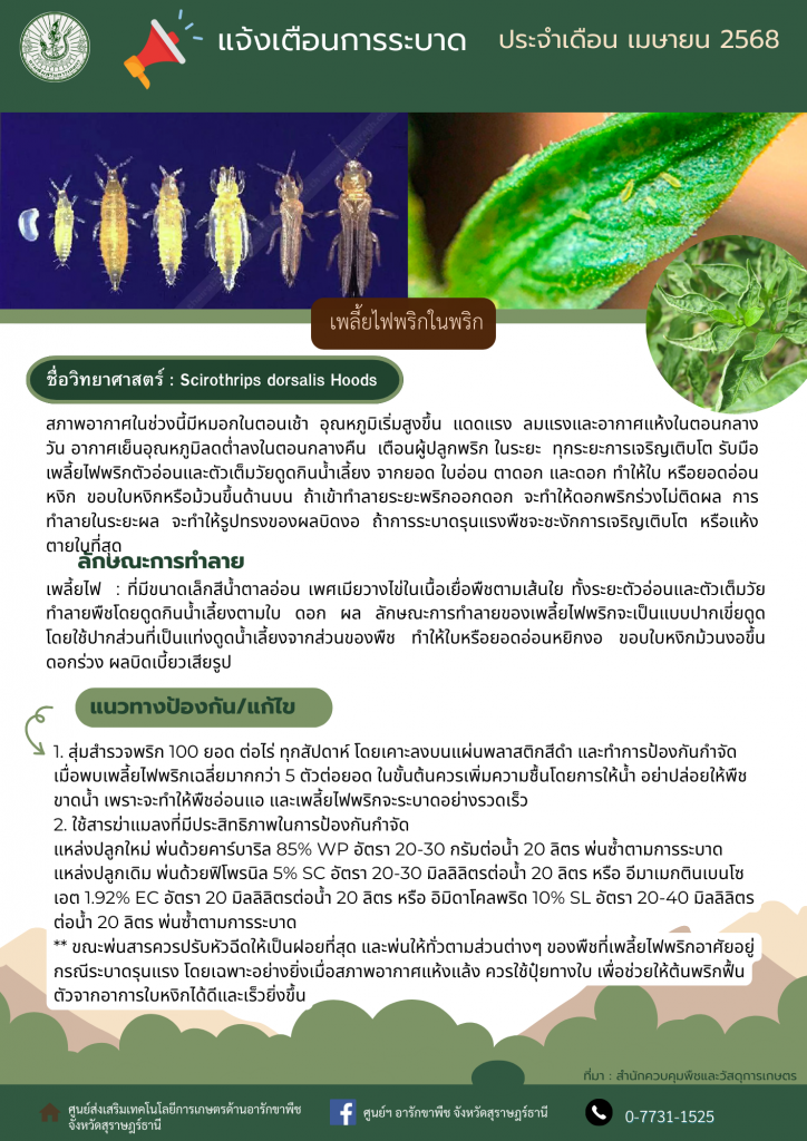 เตือน!!! การระบาดเพลี้ยไฟในพริก admin-pmc07 2025-04-11 2025-04-11 ปิดความเห็น บน เตือน!!! การระบาดเพลี้ยไฟในพริก
