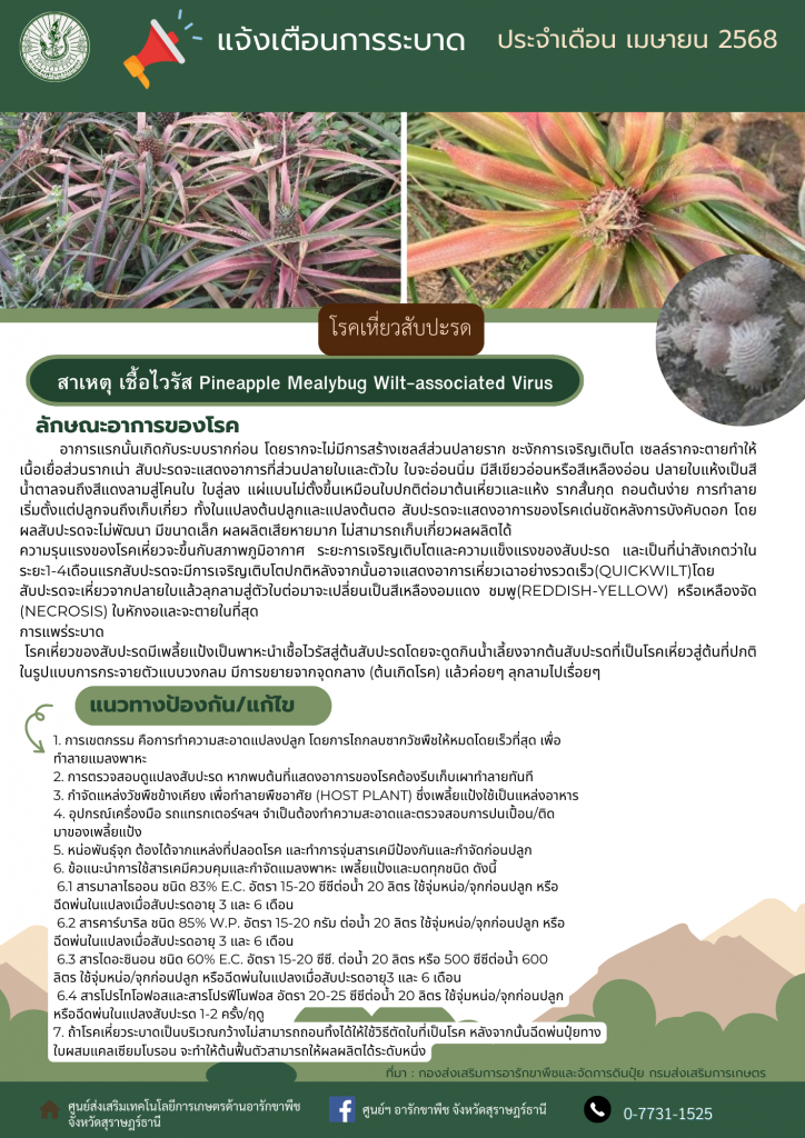 เตือน!!! การระบาดโรคเหี่ยวสับปะรด admin-pmc07 2025-04-07 2025-09-03 ปิดความเห็น บน เตือน!!! การระบาดโรคเหี่ยวสับปะรด