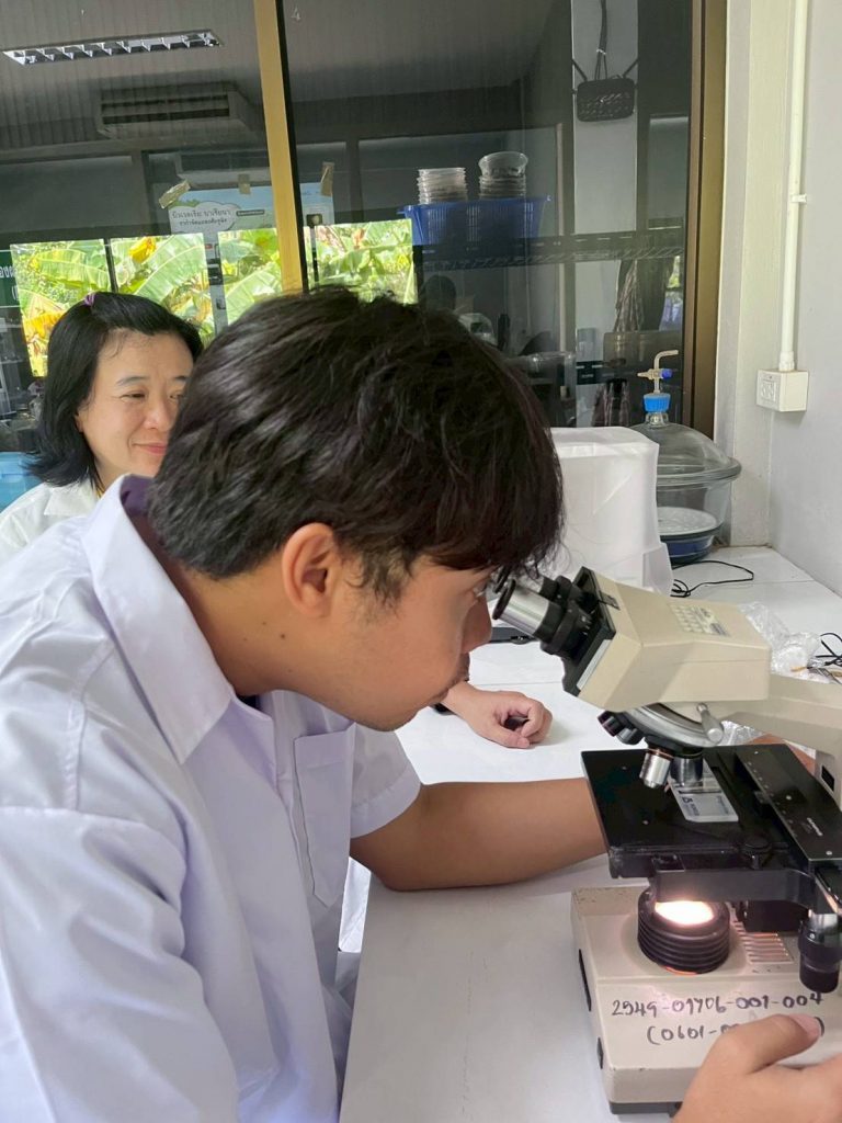 วันที่ 7 ตุลาคม 2568 นางพรทิพย์ สมวงศ์ ผู้อำนวยการศูนย์ส่งเสริมเทคโนโลยีการเกษตรด้านอารักขาพืช จังหวัดสุราษฎร์ธานี และเจ้าหน้าที่ศูนย์ ตรวจนับสปอร์ใต้กล้องจุลทรรศน์ เพื่อตรวจคุณภาพของเชื้อราเมธาไรเซียมและเชื้อราบิวเวอร์เรีย ให้มีคุณภาพสำหรับสนับสนุนในพื้นที่ที่รับผิดชอบต่อไป ณ อาคารวิทยาศาสตร์ ศูนย์ส่งเสริมเทคโนโลยีการเกษตรด้านอารักขาพืชจังหวัดสุราษฎร์ธานี