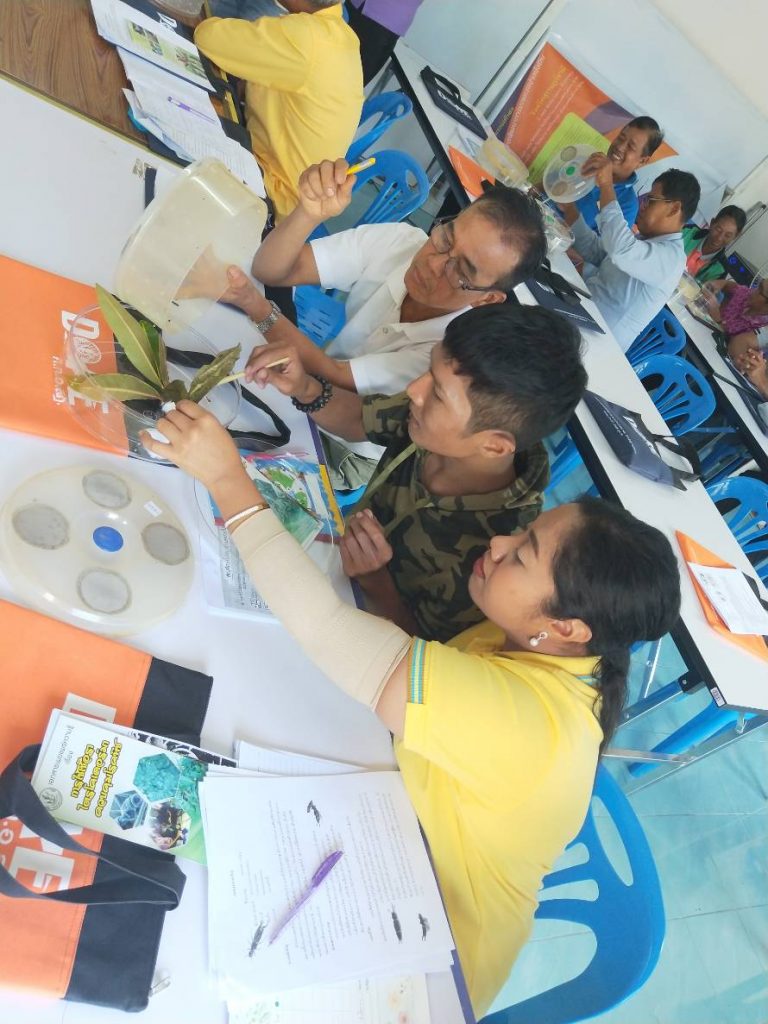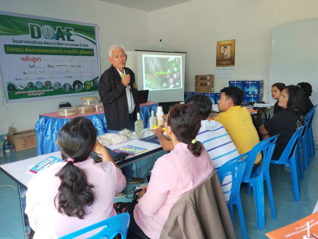 วันที่ 22 พฤศจิกายน 2561 นายสุธี ชิวหากาญจน์ นักวิชาการส่งเสริมการเกษตรชำนาญการ ศูนย์ส่งเสริมเทคโนโลยีการเกษตรด้านอารักขาพืชจังหวัดสุราษฏร์ธานี พร้อมด้วย นายจิรยุทธ จิตราภิรมย์ นักวิชาการส่งเสริมการเกษตร ฝึกอบรมเกษตรกร ในโครงการส่งเสริมและพัฒนาอาชีพทางการเกษตร กิจกรรมพัฒนาเกษตรและประชาชนทั่วไป รุ่นที่ 3 หลักสูตรการป้องกันกำจัดศัตรูพืชและการผลิตขยายเชื้อจุลินทรีย์ป้องกันกำจัดศัตรูพืช ณ สำนักงานเกษตรอำเภอชัยบุรี จังหวัดสุราษฎร์ธานี มีเกษตรกรเข้ารับการฝึกอบรม จำนวน 30 ราย