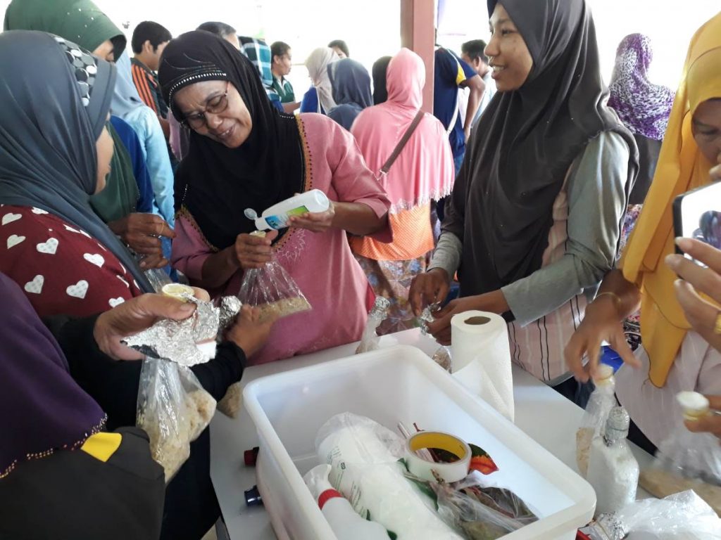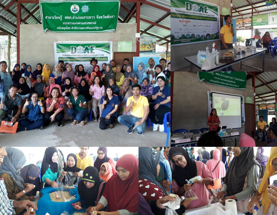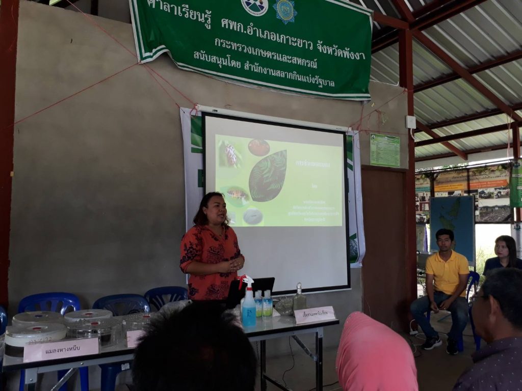 วันที่ 27 พฤศจิกายน 2561 นางชนิดา ตะเภาน้อย นักวิชาการส่งเสริมการเกษตรชำนาญการ ศูนย์ส่งเสริมเทคโนโลยีการเกษตรด้านอารักขาพืชจังหวัดสุราษฏร์ธานี พร้อมด้วย นายจิรยุทธ จิตราภิรมย์ นักวิชาการส่งเสริมการเกษตร ฝึกอบรมเกษตรกร ในโครงการส่งเสริมและพัฒนาอาชีพทางการเกษตร กิจกรรมพัฒนาเกษตรและประชาชนทั่วไป รุ่นที่ 4 หลักสูตรการป้องกันกำจัดศัตรูพืชและการผลิตขยายเชื้อจุลินทรีย์ป้องกันกำจัดศัตรูพืช ณ ศูนย์เรียนรู้เพิ่มประสิทธิภาพการผลิตสินค้าเกษตร ตำบลเกาะยาวน้อย อำเภอเกาะยาว จังหวัดพังงา มีเกษตรกรเข้ารับการฝึกอบรม จำนวน 30 ราย