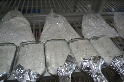 3. พบเส้นใย และผงสีขาว ของสปอร์ปกคลุมตัวแมลงที่ถูกเชื้อราเข้าทำลาย